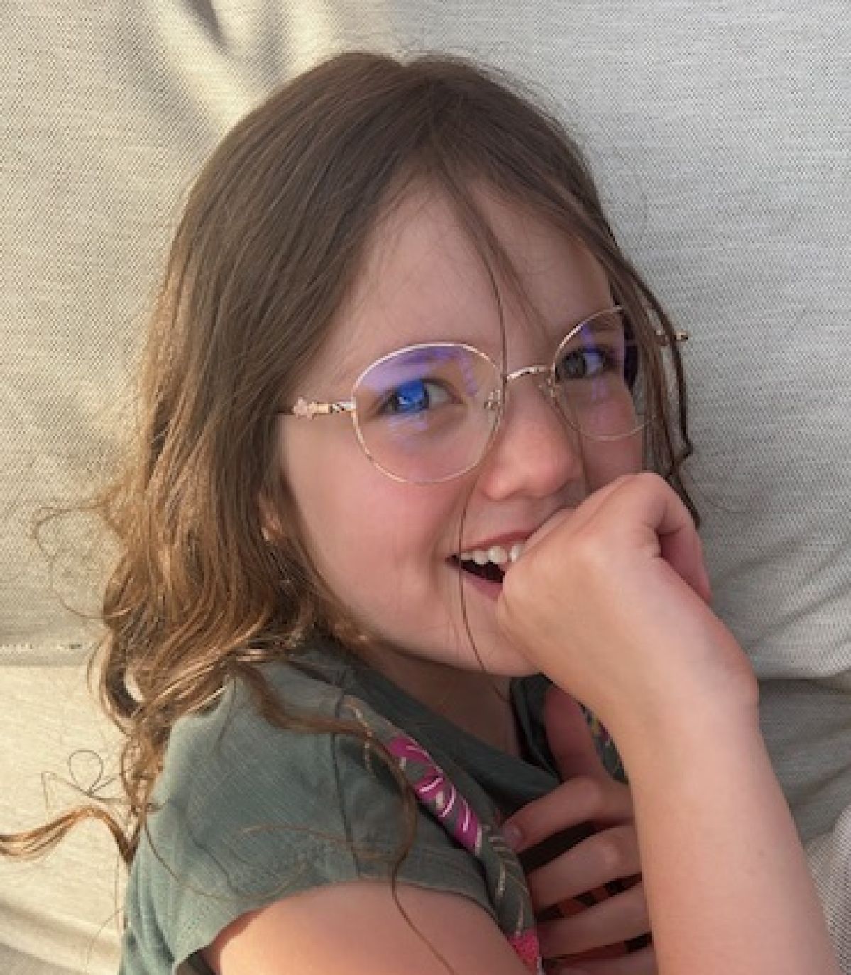Nog even een foto van Evi haar nieuwe bril. Ze is er super blij mee.